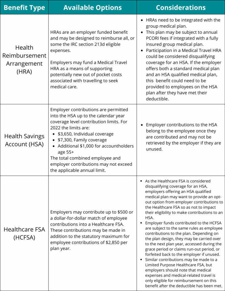 Employers looking for additional ways to provide access to medical-related travel could consider the following adjustments or additions to their benefit plans.
